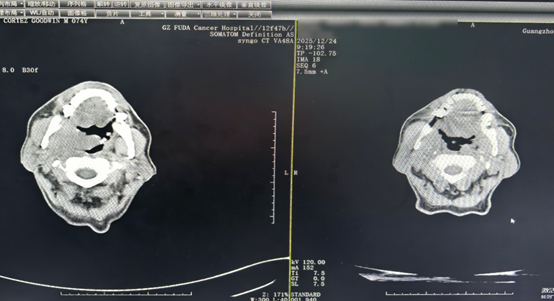 At Fuda, comprehensive examinations revealed that the tumor had invaded the nasopharynx, soft palate, and right-sided muscles, with a high risk of bleeding. Instead of traditional open surgery, the medical team designed a personalized combination treatment plan: